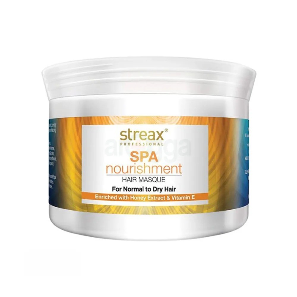 Streax Professional Spa Nourishment Hair Masque is enriched with Honey Extracts and Vitamin E. Honey Extracts seals the moisture and strengthens every strand of your hair while Vitamin E helps in keeping free radicals at bay due to its antioxidant properties. Its nourishing and revitalizing effect helps reveal hair that is smoother, softer and shinier. Indulge your hair in luxurious care with Streax Professional Spa Nourishment Hair Masque, designed for normal to dry hair. Enriched with nourishing ingredients, this masque deeply hydrates and revitalizes your strands, restoring softness and shine. It helps smooth and detangle hair, making it more manageable while preventing dryness and frizz. Perfect for maintaining healthy, vibrant hair, this masque provides a salon-like spa experience in the comfort of your home, leaving your hair feeling soft, silky, and rejuvenated.
